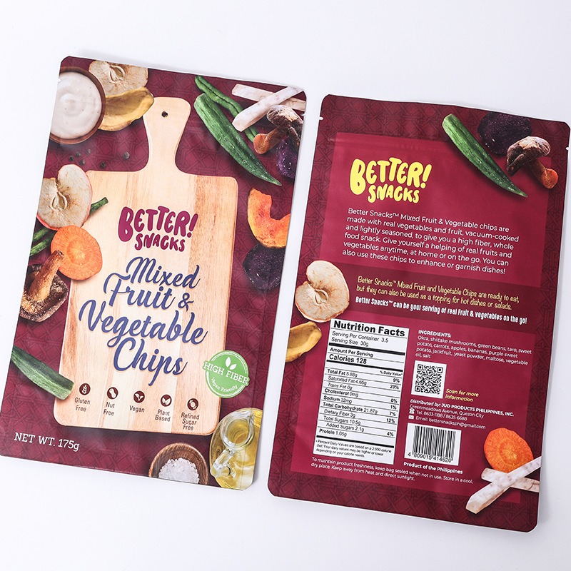 Keep your snacks fresh, vibrant, and appealing with our custom printed vegetable snack bags featuring resealable zippers and three-side seals. Designed for chips, dried vegetables, nuts, and other snacks, these bags combine durable food-grade materials, full-color printing, and professional OEM & ODM services, giving your brand maximum shelf impact and ensuring long-lasting freshness. Perfect for companies seeking customizable, high-quality packaging that stands out.